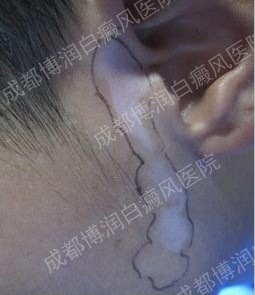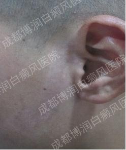 ▲病 史:患者1个月前发现面部及左耳处白斑、曾在当地医院治疗过,外用:不详,治疗无效、今来我院就诊。