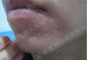 【初诊时,白斑散在分布在患者脸上,色素脱失严重】