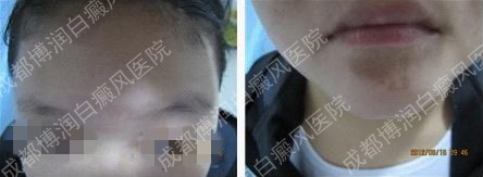 (初诊时,白斑散发在面部,色素脱失较严重)