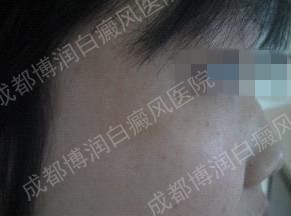 周某某目前任职一家公司的人事主管,平时面试筛选人才都是由她来办理,所以形象方面一直都很注意,一年前,周某某发现眼角处出现一块白色的斑点,因为影响到形象所以她及时到医院检查最后确诊为白癜风。之前在当地皮炎所治疗过,但是效果不明显。于是不敢再怠慢,四处打听经朋友介绍来到接受正规治疗。