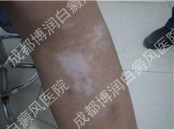病史:家住四川广元的娄某某在9年前,左侧小腿不慎被稀饭烫伤后,局部皮肤变白,在当地医院确诊是患上了白癜风。娄某某在这家医院进行了长达四个月的治疗,但是白斑仍没有得到有效控制。父母又试着去过别的几家医院,接受过不同的白癜风治疗,但是效果依然不明显。就这样拖了2年,眼看着孩子渐渐消沉下去,父母忧心不已,直到今年的七月份,艳艳的妈妈听一个朋友说,治疗白癜风效果不错,他的一个朋友患有多年的颈部白癜风,就是在这家医院治好的,于是父母再次抱着试试看的态度,带着艳艳于2012年8月25日来到我院接受治疗。