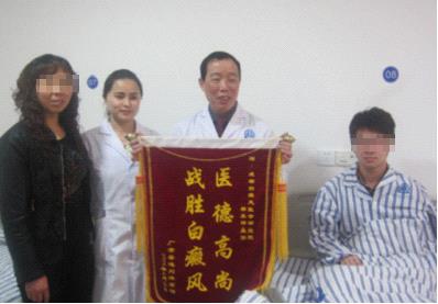 还有位20多岁的大学生,在经历了无数医院的治疗仍不能治愈的情况下,差点产生了轻生的念头,几乎不带希望的来到成都白癜风医学研究院附属医院,却在林永祥教授的手下奇迹般的治愈了8年的顽疾。为了表达自己的感激之情,患者及其家人激动地送来一面锦旗“医德高尚·战胜白癜风”赠与林永祥。