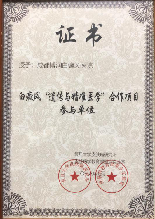 其中,白癜风精准医学研究联盟成员,四川省白癜风规范化诊疗临床基地,成都博润白癜风医院持续进行白癜风精准医学研究,与四川省中医药信息学会色素专业委员会组建(白癜风临床实验研究中心)科研团队,就白癜风影像检测、大数据、药物、治疗技术等方面,实现临床科研的转化应用。