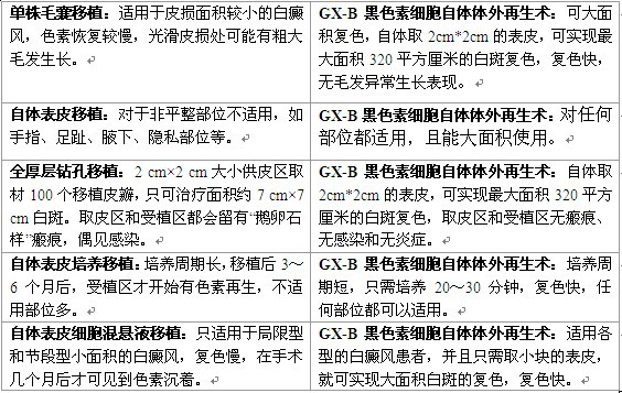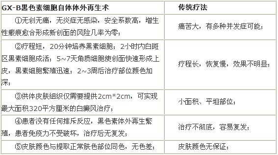 适·GX-B黑色素细胞自体体外再生术与传统移植术比较