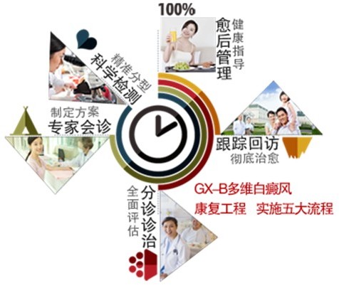 很多白癜风患者治愈后复发是因为日常生活不注意,或者是不善于愈合管理,导致白癜风复发的几率增大。GX-B多维白癜风康复工程通过愈合管理,将患者的健康情况记录分析,为患者提供最有益的健康指导,并从精神放松、个性饮食等多方面入手,联手打造健康生活管理模式。