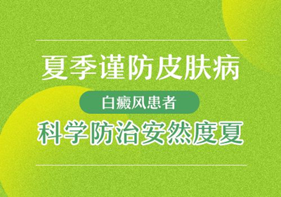 温馨提示:虽然夏季是白癜风的高发季,但是白斑患者也不要过度担心。只要调整好自己的心态,别让负面情绪加重自己的病情,把该注意的生活细节做好,坚持相应的治疗不中断,病情一定会得到有效控制的。