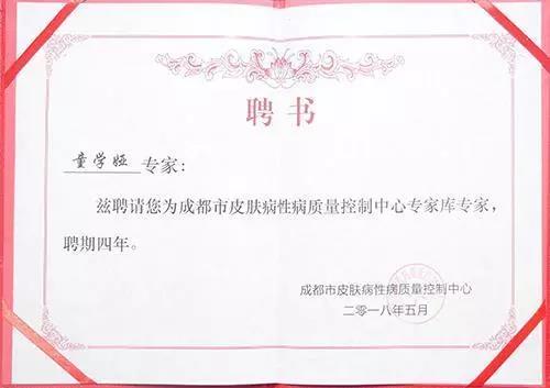 童学娅荣膺成都市皮肤病性病质量控制中心第二届专家库专家
