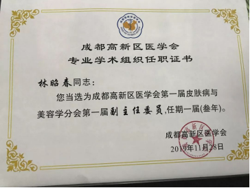 本次学术大会由成都高新区医学会主办,邀请了英国、美国、意大利以及中国大陆、香港和台湾地区等著名皮肤性病专家、学者等围绕皮肤性病经典病例及前沿技术进行学术研讨及交流。中国工程院院士廖万清、成都高新医学会秘书长曾斌、四川大学华西医院副院长龚启勇为大会致辞。大会宣布成都博润白癜风医院院长林昭春当选为“成都高新区医学会第一届皮肤病与美容学分会第一届副主任委员”,并颁发任职证书。