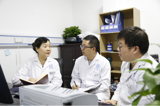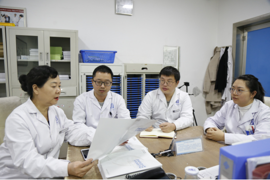 (童学娅主任与科研部研究生讨论白癜风流行病学)