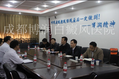 3月24日,武侯区区委副书记李旭、武侯区区委党的群众路线教育实践活动第七督导组组长周孝全、武侯区区委办主任颜崇文、红牌楼街道党工委书记卓勇、红牌楼街道党工委副书记穆文元、红牌楼街道办工会主席张仲荣一行来到成都白癜风医学研究院附属医院调研指导工作。