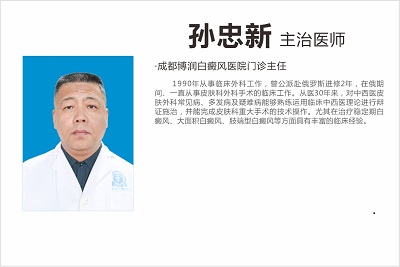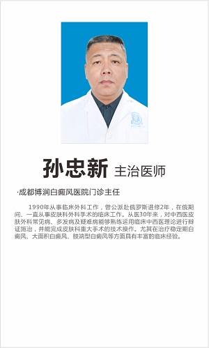 1990年从事临床外科工作,曾公派赴俄罗斯进修2年,在俄期间、一直从事皮肤科外科手术的临床工作。从医30年来,对中西医皮肤外科常见病、多发病及疑难病能够熟练运用临床中西医理论进行辩证施治,并能完成皮肤科重大手术的技术操作。尤其在治疗稳定期白癜风、大面积白癜风、肢端型白癜风等方面具有丰富的临床经验。