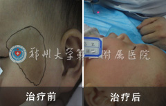 小洁在出生时左脸部有一个红点,像是蚊子叮咬,当时家人没重视。两个星期后红点不但没有消退,还明显变大,家长立即带孩子到当地医院进行了检查,确诊 为咖啡斑,医生观察后说可以自行消退,所以没有治疗。在后期观察中,宝宝咖啡斑还是继续增长,已经有一个拳头大小。家长这才意识到宝宝病情的严重性,到处打听怎么治疗,后得知郑州大学第二附属医院是专业治疗咖啡斑的医院,于是从东北老家赶到郑州寻求帮助。