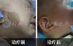 飞飞出生时右边脸颊上就有一块咖啡斑,当时因为面积小,颜色较淡,没引起父母的注意。飞飞慢慢长大了,两岁时,右脸边上的咖啡斑越来越大,颜色也变深了,邻居小朋友的时常嘲笑她。赵妈妈带飞飞去医院治疗过,不见疗效反而有“迅猛”的趋势,咖啡斑颜色愈发见深了,急坏了赵妈妈。