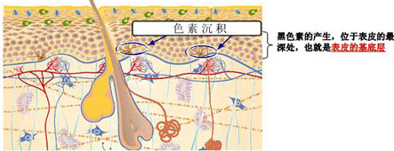 (图3、色素细胞沉着在基底层普通疗法难以检测到)